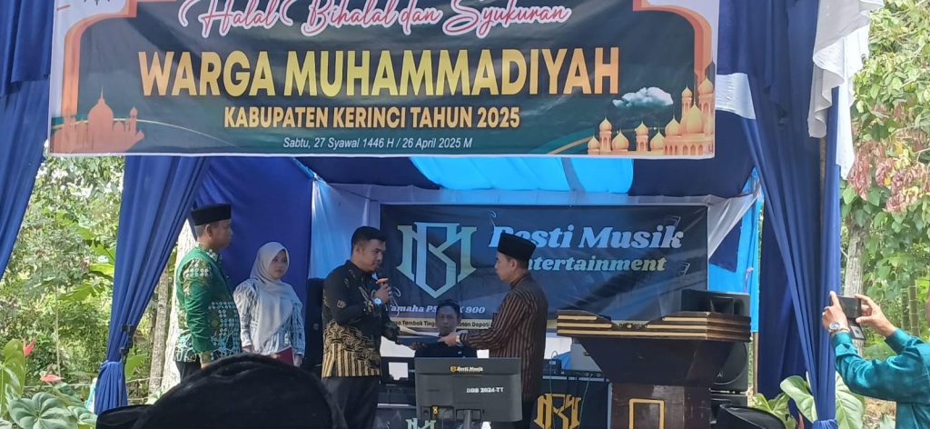 KERINCI – IDEAA.ID || Bupati Kerinci dan Wakil Bupati Hadiri acara Halal Bihalal dan Syukuran Keluarga Besar Muhammadiyah Kabupaten Kerinci di Rumah Ketua Pimpinan Daerah Muhammadiyah (PDM) Kerinci, Dr. Faizin, S.Ag., M.Pd.I, di Desa Tambak Tinggi, Kecamatan Depati VII, Sabtu (26/04/2025).