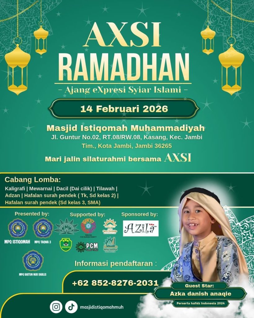 Di kawasan PCM Jambi Timur, tepatnya di Komplek Masjid Istiqomah, kegembiraan itu menemukan bentuknya yang paling konkret melalui sebuah kegiatan bertajuk AXSI (Ajang eXpresi Syi’ar Islami). Nama yang modern, namun ruhnya klasik: menghidupkan syiar, menumbuhkan kader, dan meneguhkan identitas keislaman sejak dini.
