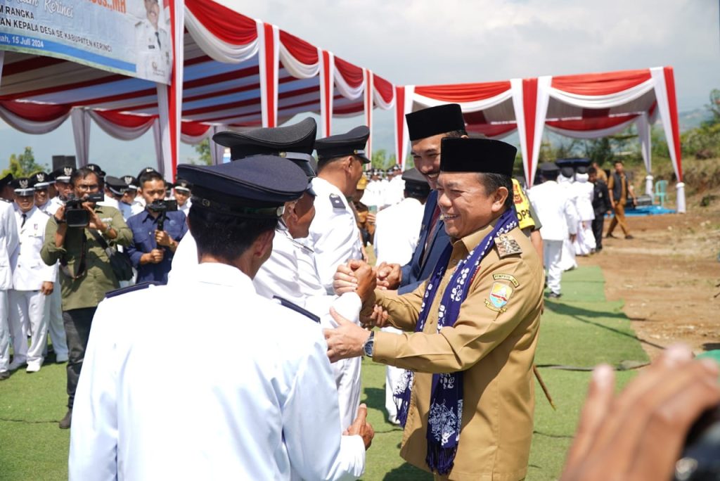 KERINCI – IDEAA.ID || Gubernur Jambi Dr. H. Al Haris, S.Sos, MH menghadiri dan menyaksikan Pengukuhan Perpanjangan 2 tahun masa jabatan Kepala Desa se-Kabupaten Kerinci oleh Pj. Bupati Kerinci, Asraf. Pengukuhan masa perpanjangan 285 Kades menjadi 8 tahun ini berlangsung di Depan Kantor Bupati Kerinci, Bukit Tengah, Siulak Mukai, Kabupaten Kerinci, Senin (15/07/2024).