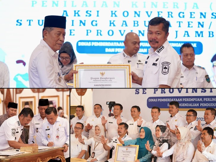 Jambi, 2 Juli 2025 – Komitmen kuat Pemerintah Kabupaten Kerinci dalam menurunkan angka stunting kembali membuahkan hasil membanggakan. Pada tahun 2025 ini, Kabupaten Kerinci menerima Piagam Penghargaan sebagai Daerah Inspiratif dalam Pelaksanaan 8 Aksi Konvergensi Stunting dari Pemerintah Provinsi Jambi.