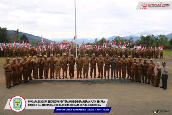Bupati Kerinci Pimpin Apel Kerja Bersama dan Serahkan Bendera Merah Putih Sambut HUT ke-80 RI