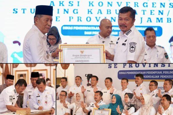 Jambi, 2 Juli 2025 – Komitmen kuat Pemerintah Kabupaten Kerinci dalam menurunkan angka stunting kembali membuahkan hasil membanggakan. Pada tahun 2025 ini, Kabupaten Kerinci menerima Piagam Penghargaan sebagai Daerah Inspiratif dalam Pelaksanaan 8 Aksi Konvergensi Stunting dari Pemerintah Provinsi Jambi. Penghargaan prestisius tersebut diserahkan langsung oleh Wakil Gubernur Jambi, KH. Abdullah Sani, dalam acara Penilaian…