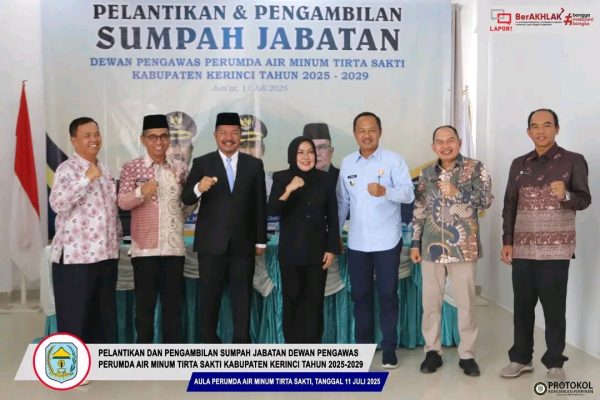 Kerinci, Jumat 11 Juli 2025 – Bupati Kerinci, Monadi, S.Sos., M.Si bersama Wakil Bupati Kerinci menghadiri acara pelantikan dan pengambilan sumpah jabatan Dewan Pengawas Perusahaan Umum Daerah (Perumda) Air Minum Tirta Sakti Kabupaten Kerinci. Dalam kegiatan yang digelar di Ruang Pola Kantor Pusat Perumda Tirta Sakti Bukit Tengah tersebut, Bupati Kerinci secara resmi melantik dan…