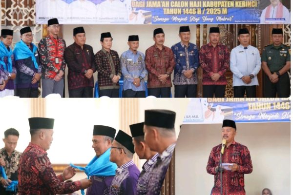 KERINCI, 8 Mei 2025 – Sebanyak 326 jemaah calon haji asal Kabupaten Kerinci resmi dilepas keberangkatannya dalam sebuah prosesi penuh khidmat yang digelar di Masjid Arraudoh, Semurup, Kecamatan Air Hangat, pada Kamis (8/5). Acara pelepasan ini dihadiri oleh Bupati Kerinci Drs. Monadi, S.Sos, M.Si, Wakil Bupati H. Murison, S.Pd, S.Sos, M.Si, para tokoh agama, unsur…