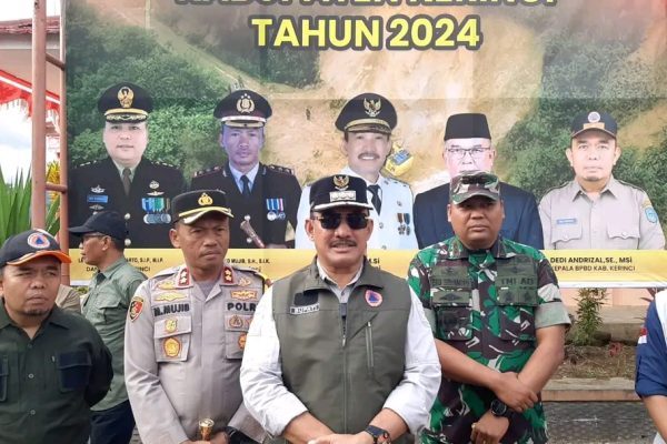 KERINCI – IDEAA.ID || Pj. Bupati Kerinci Asraf, S.Pt.,M.Si bersama Dandim 0417/Kerinci, Kapolres Kerinci bersama dengan Forkopimda dan Instansi Terkait, hadir dalam kegiatan Apel Kesiapsiagaan Penanggulangan Bencana Hidrometeorologi Tahun 2024 yang berlangsung di Lapangan BPBD Kabupaten Kerinci Sabtu, (07/12/2024) Apel Kesiapsiagaan Bencana Hidrometeorologi ini dihadiri oleh Pj Bupati Kerinci, Dandim 0417/Kerinci Kapolres Kerinci dan diikuti oleh…