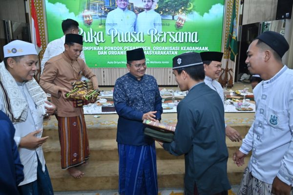 JAMBI-Wali Kota Jambi, Dr. dr. H. Maulana, M.K.M., bersama Ketua TP PKK Kota Jambi Dr. dr. Hj. Nadiyah, Sp.OG dan Wakil Wali Kota Diza Hazra Aljosha, S.E., M.A., menghadiri kegiatan penyaluran bantuan sembako bagi masyarakat kurang mampu. Kegiatan tersebut berlangsung di Taman Wisata Donorejo, Kelurahan Wijaya Pura, Kecamatan Jambi Selatan, Senin (2/3/2026). Dalam kegiatan itu…