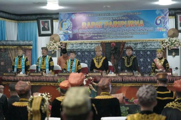 Kerinci – Sidang Paripurna DPRD Kabupaten Kerinci dalam rangka Hari Ulang Tahun ke-67 Kabupaten Kerinci berlangsung khidmat di Gedung DPRD Kerinci, Bukit Tengah, Siulak, Minggu (9/11/2025). Hadir dalam agenda istimewa ini Gubernur Jambi Dr. H. Al Haris, S.Sos, MH, para bupati dan wali kota dari berbagai daerah di Provinsi Jambi maupun wilayah tetangga, serta unsur…