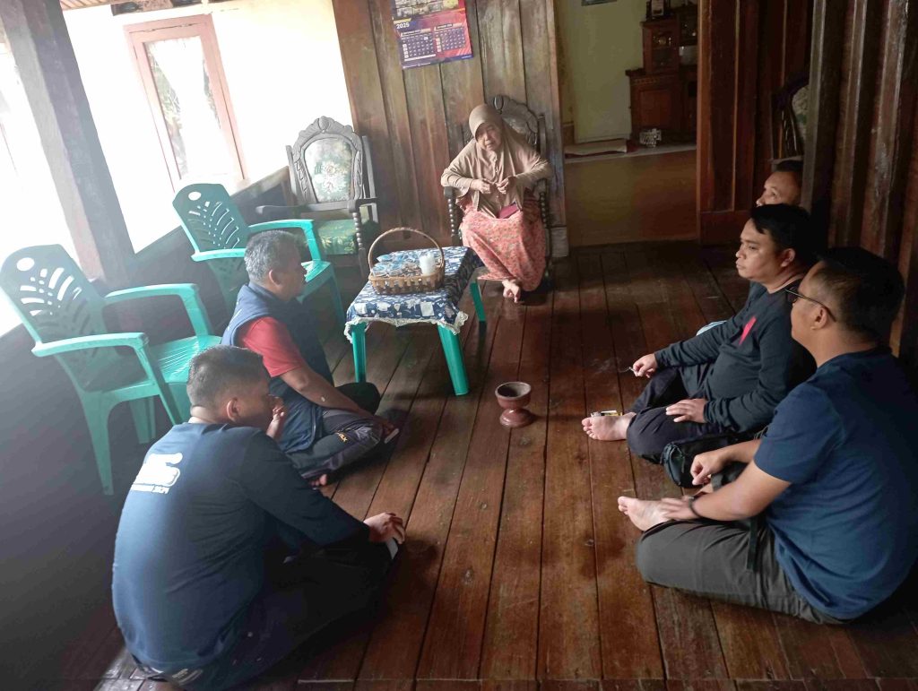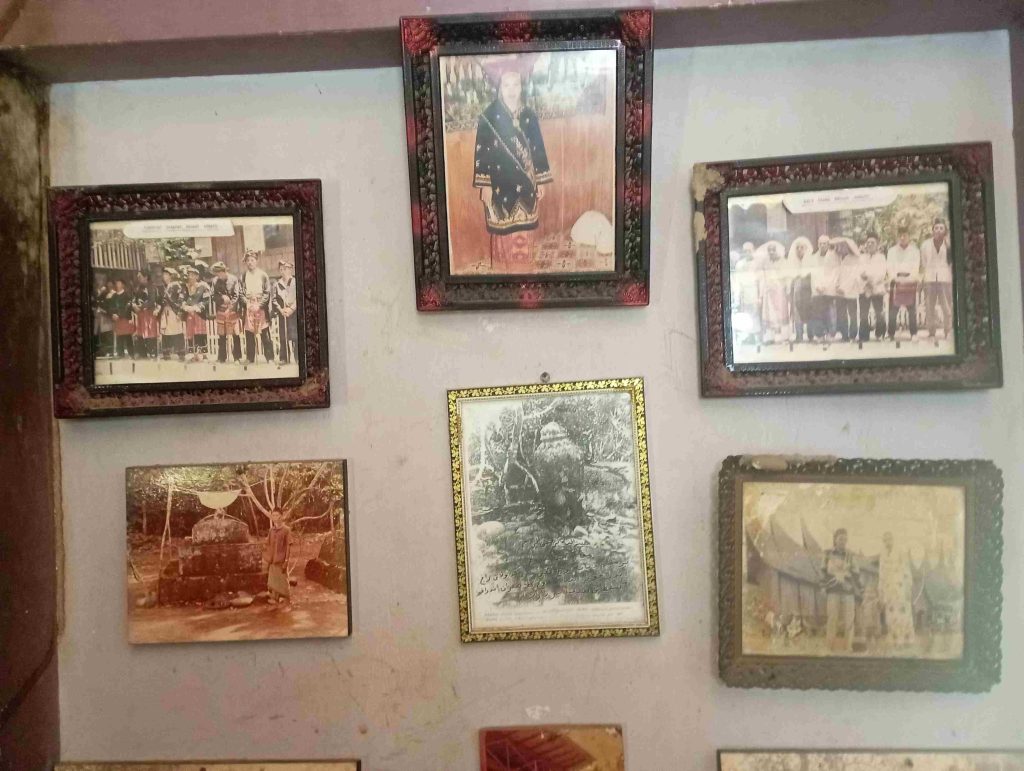 Matahari belum sepenuhnya rebah ketika rombongan duduk memandangi rumah adat tua yang masih tampak kokoh. Cat kecoklatan mengkilap, ornamen lama terpajang gagah, meski beberapa bagian dinding dan lantai telah diganti karena usia. Namun wibawa dan aura sejarah bangunan itu tetap terjaga kuat.